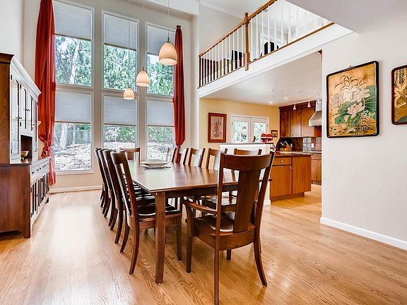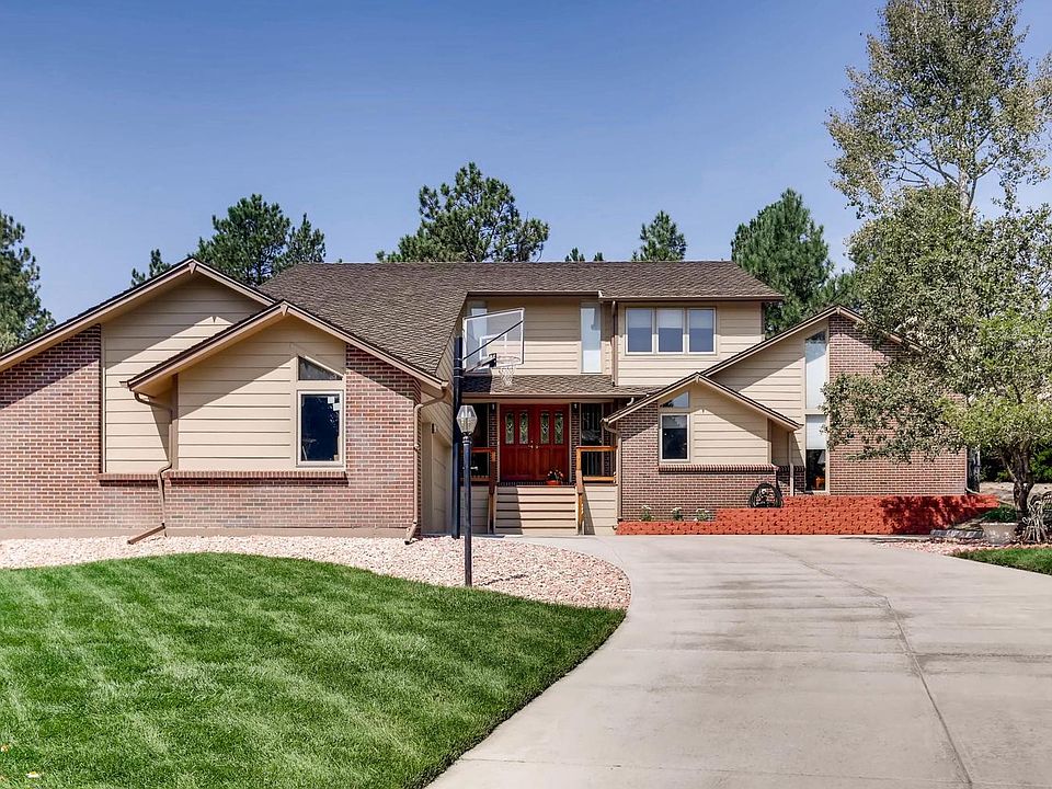 New Price! Great Opportunity to live in the beautiful Pinery. Upgrades throughout the house in and out. The heart of the home has a remodeled gourmet kitchen w/large center island, breakfast nook, s/s apps, double oven w/convection, gas cook top, abundant cabinet space, granite counter-tops w/full back splash & large pantry. Stunning dining room seats 12 comfortably. The family room features vaulted ceiling & gas fireplace. French doors off the kitchen, open to wrap-around patio which is the perfect area to watch & enjoy the wildlife especially those baby fawns. The main level has extensive hard wood flooring throughout. The main master suite is thoughtfully separated from the other bedrooms that includes a luxurious over-sized walk-in ADA compliant shower. Upstairs loft can be used as home office. The walkout finished basement adds additional living, entertaining & storage space. Located in a quiet cul de sac amongst tall Ponderosa pines & w/in minutes of shopping and downtown Parker.