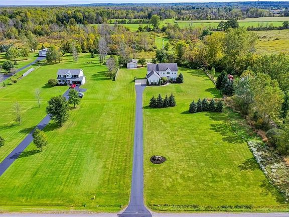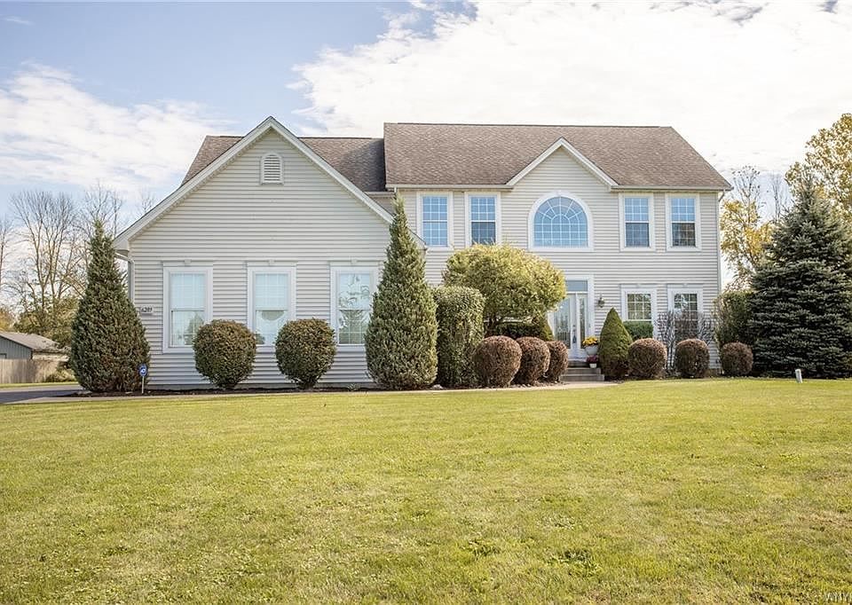 Welcome to 6289 Utley Road; Custom built by David Homes in top-rated Clarence School District, this 3,444 sqft colonial is setback 300' on 6 acres, boasts a 3.5 car garage & 24X32 outbuilding w/poured floor & electric! Your two-story foyer opens into the office with french doors and leads to the oversized kitchen with newer stainless appliances. The great room with gas fireplace will surely fit your furniture. Loads of light pours in through the morning room that leads to the two-tiered composite deck overlooking the pool & firepit area! The formal dining & living room are prefect for entertaining. Upstairs features a 500sqft master suite with sitting area, his & her walk-in closets, & glamour bath with soaking tub & oversized shower. The other 3 bedrooms are a great size, and the second full bath has a double vanity! Loads of storage, 9' basement ceilings, new water heater, private lot, & more! Built in 2002, this property is nearly impossible to reproduce for the money!