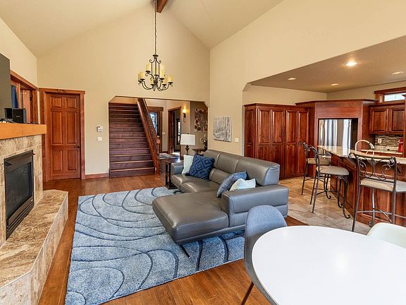 This spectacularly crafted home w/Travertine, Slab Granite, & more finishes typically found in million dollar homes. Main floor living, with zoned radiant floor heating, A/C and also new mini-split heat and cooling zone system. Large deck with hot tub & yard overlooking the rushing water of the canal and wildlife. Lots of decking, terrific fire pit, fully fenced yard and within walking distance of the new 10 Barrel Pub. 4 bedrooms and 2 full bathrooms. The master bedroom suite is on the main level. 2261 square feet of living!