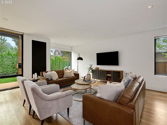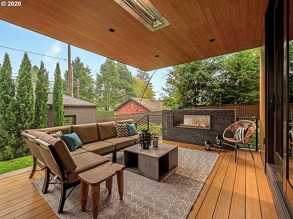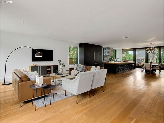 First Addition's consummate modern living offers sleek architecture & fixtures, near net-zero solar, rare private gate w/parking & detached garage/studio. Step through floor to ceiling glass sliding doors to the covered bamboo heated deck w/blt-in BBQ & gas frplc overlooking lawn & raised garden beds. Hi-speed EV charging & gigabit internet. Phenomenal open living/dining w/large picture windows & exceptional natural light. Low profile built-in storage & all 5 minute walk to downtown Lake Oswego!