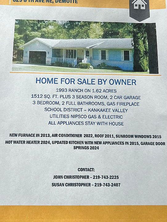 Ranch with 3 season room, all appliances stay with home plus washer and dryer.