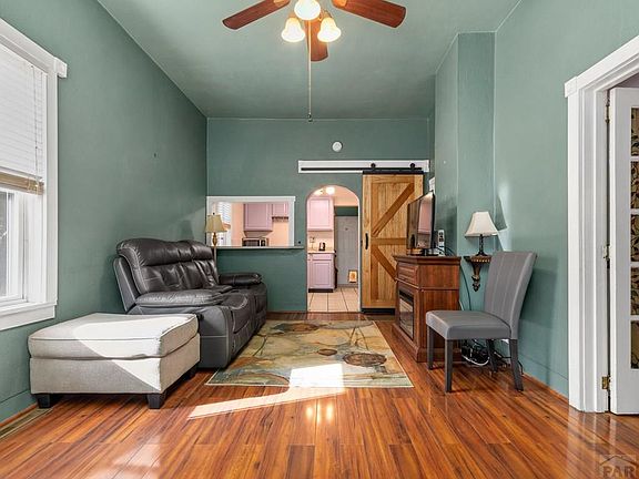 Charming two bedroom, one bathroom home located across from Bruner Park. With tall ceilings and elegant French doors, the interior exudes a sense of sophistication. The flooring consists of hardwood, laminate, and tile, adding to the overall appeal. Kitchen layout is convenient and all appliances are included. Full bath boasts tiled shower surround. Archway to living room has lovely barn door for seclusion if desired. The mud/laundry room (washer & dryer stay) offers additional storage and an adjacent walk in closet is currently utilized as an office. Notably, the property is equipped with an electric vehicle (EV) charger, vinyl windows, upgraded attic insulation, and central heating / refrigerated air for your comfort. The outdoor space is truly remarkable, showcasing a spacious cement patio, wooden privacy fencing (secure for pets), a versatile shed, fruit trees, and a fire pit area complete with ample firewood to get you started. The two car carport protects your vehicles. Additionally, the long driveway offers the convenience of accommodating an RV. Close proximity to downtown, riverwalk, fine dining, shopping, grocery stores, golfing and the reservoir.