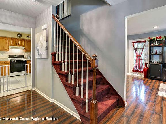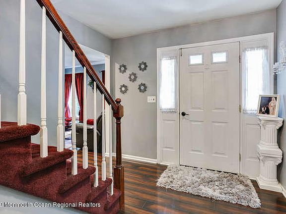 Hidden from the road you will find this wonderful colonial! Entertain in the large eat-in kitchen, with slider leading to huge deck w/hot tub, Family room with cozy fireplace, and french doors to sun room overlooking private 1 acre property. En-suite master bedroom has large walk-in-closet with built in shelves, renovated master bath with double sinks and shower. Hardwood floors in dining room, living room and foyer. Updated baths, All rooms very spacious, lots of storage throughout. New water filtration system, newer roof, two car garage with attic storage above. Shed, beautiful landscaping and much, much more... A MUST SEE!!! Location is very convenient, with access to 195, Rt 537 and six flags.