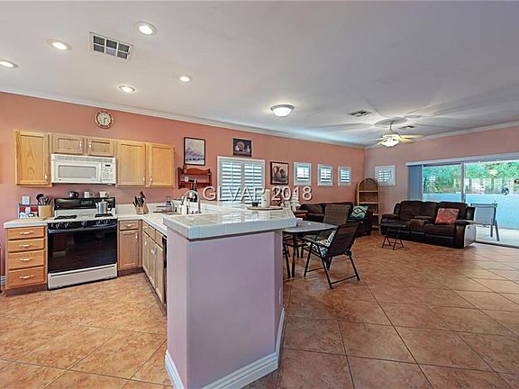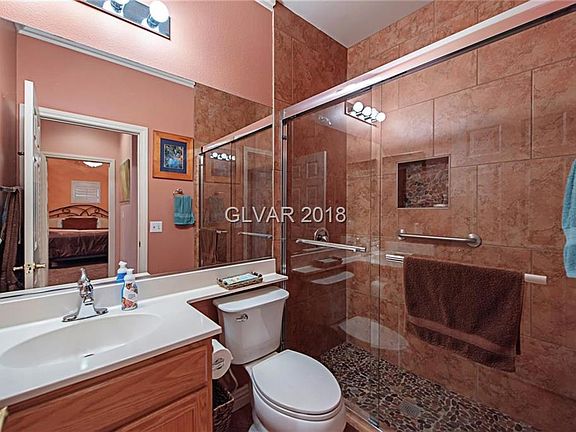 1 Story Home, very open kitchen and family room facing the backyard. Very big backyard for this size home in Gated Community w/ Community Pool/Club House Room - 2 Bedroom / 2 Bath -Neighborhood is right on Cottonwood Canyon Park and down the street from Downtown Summerlin. Highly popular community!