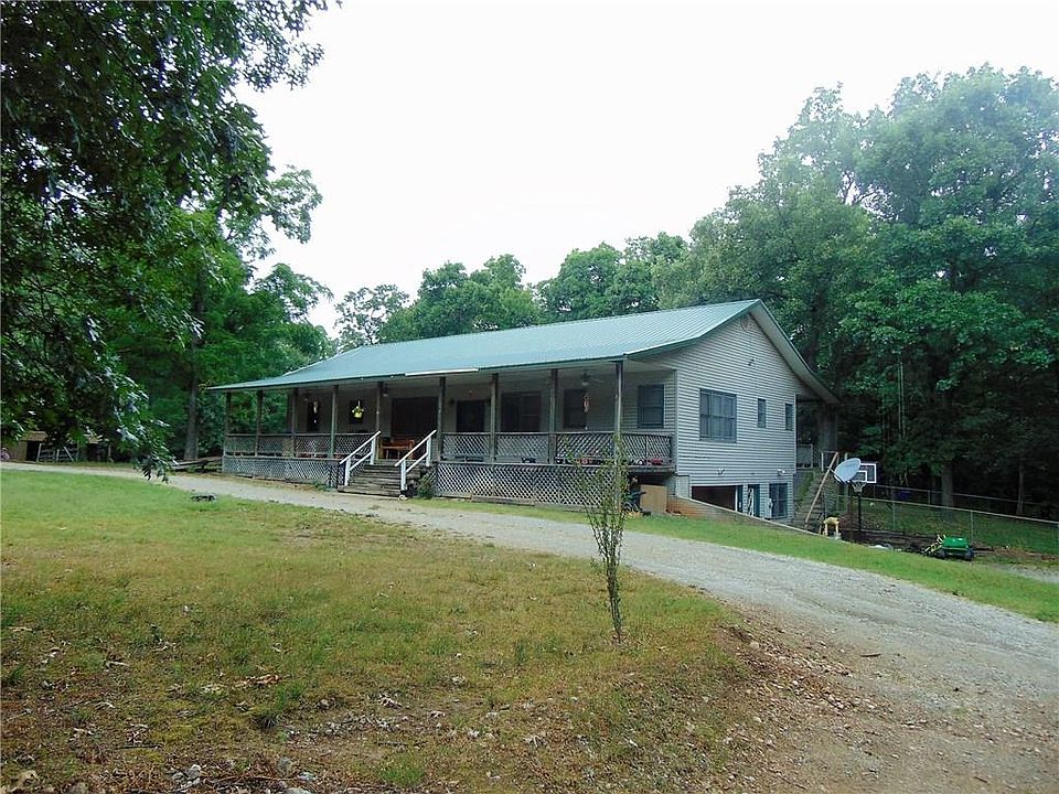 Home and 6.67 mostly wooded acres. The home has the feeling of a secluded cabin with 3 bedroom, 2 baths, large kitchen with pantry & formal dining room. There are 2 covered decks on the front and back of the house to sit and enjoy the nature of the property. This property is located within 10 minutes of the Berryville square.