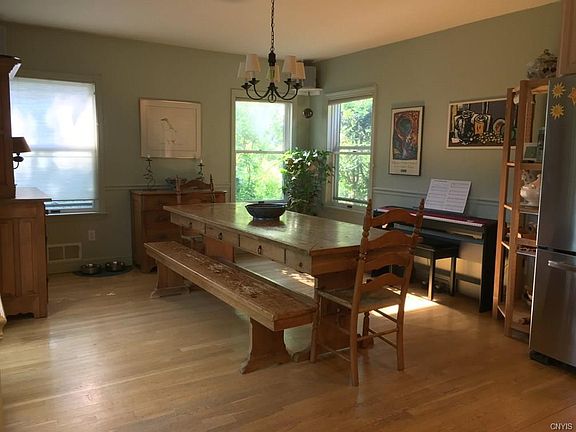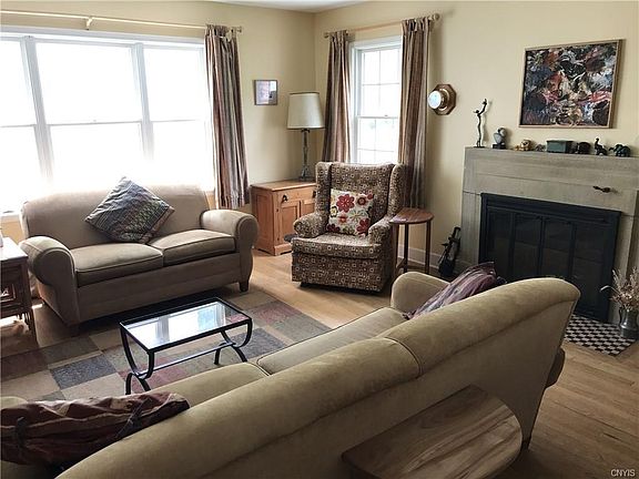 Spacious colonial with loads of charm located on a residential street offering a quiet, friendly neighborhood within walking distance of Syracuse University and Westcott Street area. The large living room has a fireplace and many windows and there are hardwood floors through out the house. The updated kitchen with all stainless steel appliances flows to a very large dining area overlooking a private garden in a fully fenced back yard. Upstairs there is an updated bath with skylight, 3 bedrooms plus den/study area off master. The finished attic and basement rec room with fireplace are not included in square footage. Brand New Roof! Whole house water filter system.