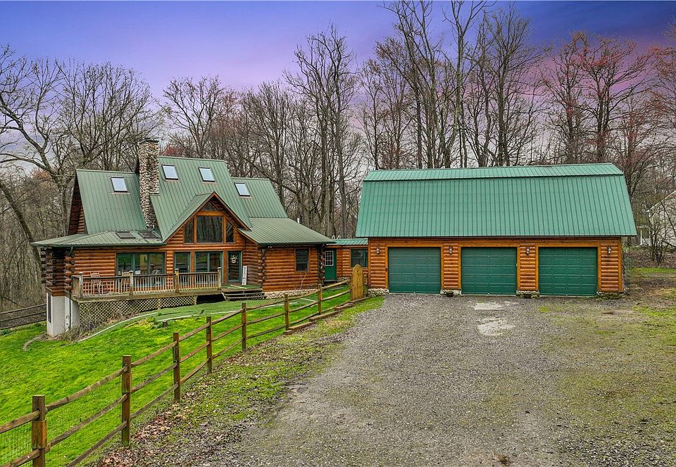Take a look at this one-of-a-kind, beautiful, secluded, log cabin home in the Mars School District. This 4 bed 2.5 bath home sits on over 4 acres of property, has an attached 3 stall garage (with 2nd level loft), a finished basement, & storage galore. Walk in to find a breezeway with first floor laundry and a large open, updated kitchen perfect for entertaining. The living room is adorned with natural pine, vaulted ceilings, and a wood burning fireplace. The master bedroom is on the main floor with a fully updated master bath and perfect home office. The 2nd floor overlooks the main floor and has 2 more large bedrooms along with another full bath. Head down to the finished basement where you will find another office space, another bedroom with attached living space, and two more finished rooms to be anything you need! The basement walks out to the fenced in back yard perfect for pets and children. This home will make you feel like you're on vacation but still close to everything!