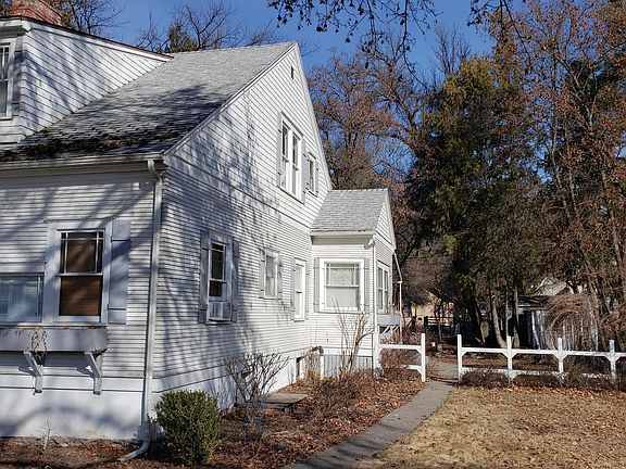 NEW PRICE! What a charmer! This 3BR/3BA 2654 sq ft. home on .42 acre in town features beautiful original hardwood floors, real stone fireplace in living room, huge front and back covered porch, basement workshop and lots of mature landscaping & a stream running though the property. In addition, there is a small Carriage house that could be rented out or used for storage plus three additional storage sheds on site. Lots of sweat equity could make this once stately home shine again. Home is being sold ''as-is''. Seller to do no repairs.