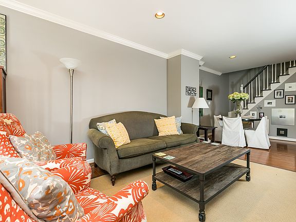 Phenomenal Federal Hill town home w/roof deck & patio! 1st floor has wide living & dining rooms w/wood floors & exposed brick, kitchen w/ stainless appliances, breakfast bar & table space. Rear door to luscious garden & patio. 2nd floor has 2 bedrooms & 2 full baths. Inside stairs lead to roof deck w/incredible water & city views. Great location close to water & Inner Harbor! Don't miss this!