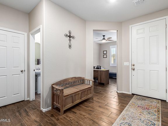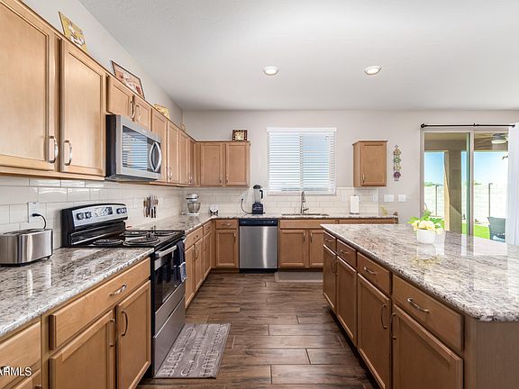 You'll LOVE this beautiful 3-bed, 2.5-bath, 2022, home in up and coming Avondale. Stone accents, 2-car garage, & a delightful landscape are just the beginning. The fabulous interior showcases plantation shutters, Bright, natural light, neutral paint, tasteful flooring - soft carpet & wood-look plank tile. The open layout is perfect for both everyday living and entertaining. The kitchen boasts SS appliances, granite counters, subway tile backsplash, a pantry, ample wood cabinetry, and an island w/breakfast bar. Completing the downstairs, you have a versatile den for an office or can be made into a 4th Bedroom. Upstairs, you'll find the cozy loft, along with the bedrooms. En Suite in the main bedroom with dual sinks & a walk-in closet. Beautiful views of the Estrella Mountains to the South