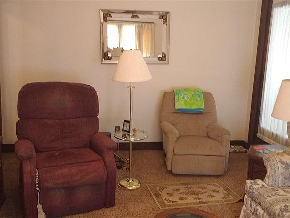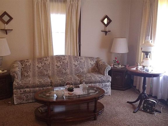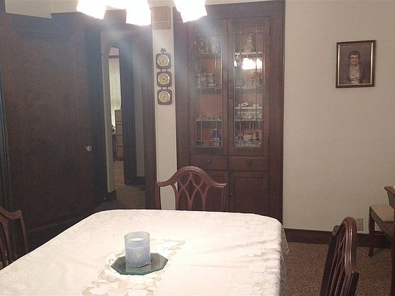 1.5 story stucco home. 2 bedrooms on main floor, 1 bedroom upstairs. Stool & shower in basement. Large living & dining rooms. 1 stall garage by house and 3 stall garage by alley.