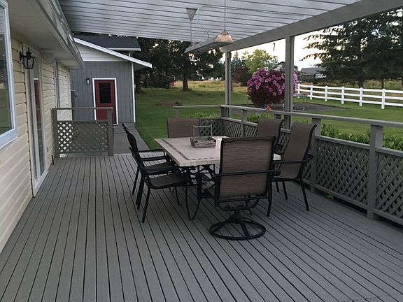 Meticulous ONE level 2514 sq. ft 3 bd/2.5 bath home on 5.27 fully fenced acres in mid-county. This beautiful property has a 36'x36' three bay shop,16'x32' RV shop w/loft and lots of parking plus a detached and heated 22'x30' rec room. A large deck partially covered and heated seating,spacious open kitchen,large utility room with cabinets, walk-in closets,walk-in pantry, full bath off master, new gutters,gen trans and generator,40 year roof,new ext.paint.Secluded,peaceful and well maintained.