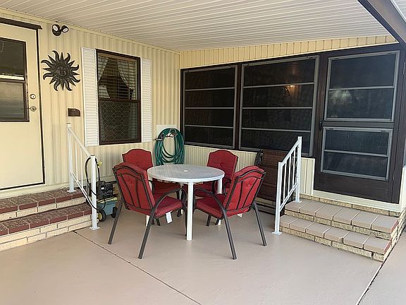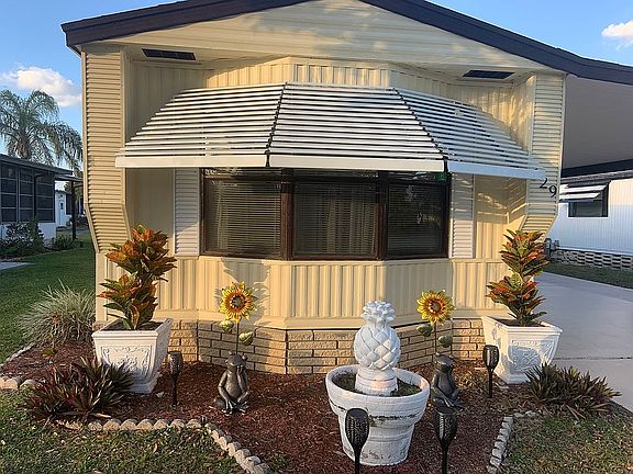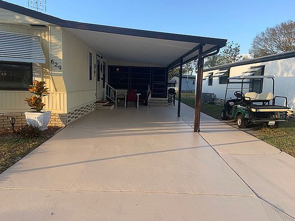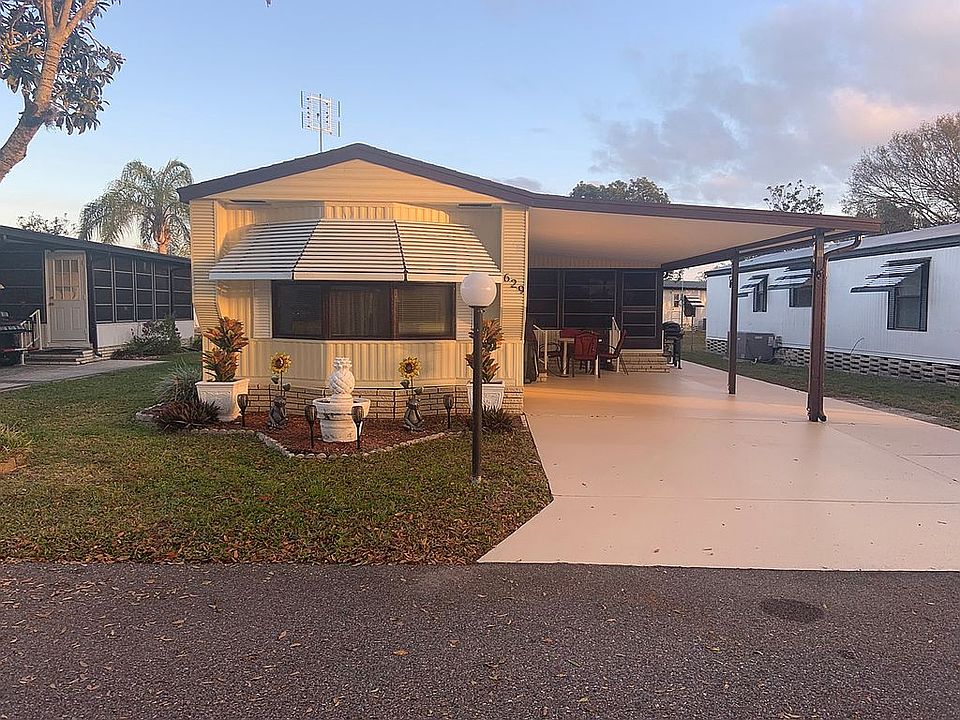 FOR SALE 629 E Sunkissed Circle, Avon Park This updated move in ready 2 bedroom, 2 bathroom fully furnished open concept home offers approximately 784 sq.ft. in the main living area plus an oversized Florida room adding another 186 sq.ft. of heated and air-conditioned space. The flooring in both bedrooms and the living room have had new plank flooring installed and both bedrooms are freshly painted. Both bathrooms have had raised toilet fixtures installed. A new tv antenna has been installed and cable and internet are available. The kitchen has solid surface countertops and a pantry, a double oven MayTag SS range, a KitchenAide refrigerator as well as microwave and many small appliances. The home has a brand new roof and upgraded carport with vinyl covering and insulated roof pans. Window vinyl in the Florida room has been recently replaced and most window screens replaced. Window awnings and clam shell awnings are all new. The home is heated and cooled and the unit has been recently serviced by Miller Air and most electrical components upgraded. An extra large utility/laundry room is combined with a golf cart garage with roll up door and a work bench. Too many things to list. Please call 905 252 2050 if you would like more information or would like to come see it. Big savings by buying privately, please ask how. There is a life lease on the land that restricts the owners from arbitrarily raising lot lease fees. Current lot lease is $470.01 per month but to be confirmed for purchaser.