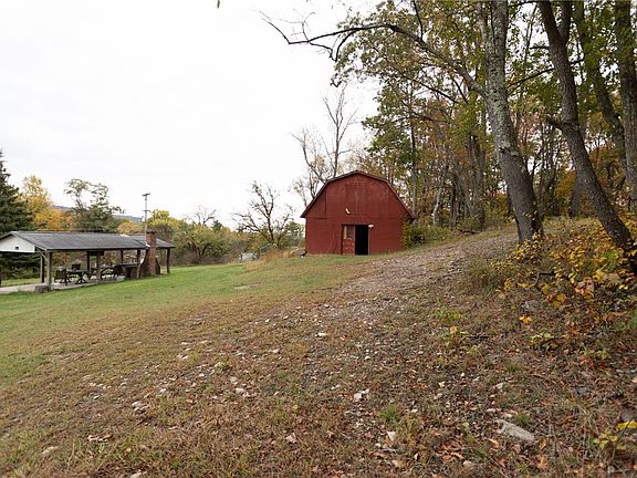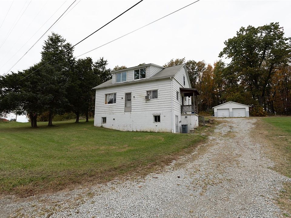 Situated on over 2 acres, this 1.5 story, 3 bedroom, 1 bath home offers a peaceful setting! The main level features a charming kitchen, a quaint living room, a full bath and a master bedroom with a sizeable walk-in closet OR a captive 4th bedroom/nursery! The second story hosts 2 spacious bedrooms, both with endless potential, waiting for a new owner's finishing touches! The outdoor space provides the convenience of a 2 car detached garage and a driveway for off-street parking! Perfect for outdoor hosting, enjoy the covered porch and the covered pavilion with electricity and working chiminea for cookouts! Above the pavilion stands a barn, perfect for additional storage! Endless potential and desirable location!