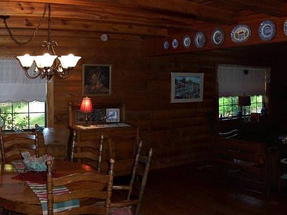 Beautiful 4BR 3B 2 story 3100 sft custom built log home with 1800 sqft basement which includes laundry room and full bath. Home has a formal living room with wood burning fireplace, formal dining room, kitchen with island bar and breakfast area. Large master bedroom has fireplace, loft with office, metal roof, 2 car detached matching log garage with 3 doors, landscaped, shady yard. Home is sitting on 43 acres with a pond, creek and 32 acres of marketable pine and hardwood timber.
