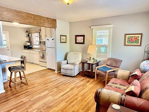 Welcome home to this charming 3 bedroom, 1 bath located on Pueblo's south side. Walkthrough the front yard flower garden and in the front door to the beautiful hardwood floors of the living room that overlook your open kitchen. The bedrooms are all nicely sized and the bathroom remodel is just what you're looking for. The primary bedroom offers its own access to the backyard covered patio. Just imagine yourself waking up each morning with a cup of coffee 2 steps outside of your room, rain or shine. You won't want to miss this affordable southside gem. Schedule your showing today!