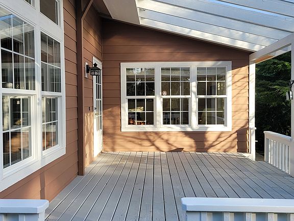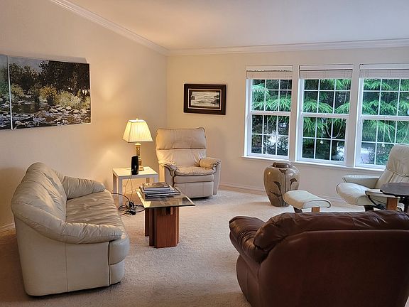 Golden West 3 bdrm/2 1/2 bath, 1800+/- sq ft home and sunny covered deck viewing wooded Munsel Creek Common area. This well maintained home and corner lot comes with RV pad w/dump & hookups for short term use only. The 2nd bedroom/office has a slider to  landscaped backyard w lights & waterfall.Complete with oversized finished garage with shelving & workbench. Don't miss this value!