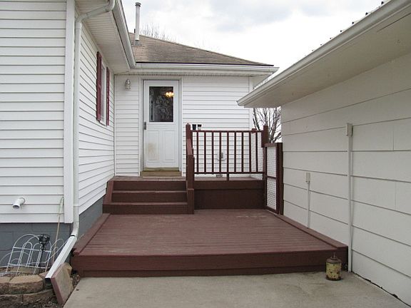 Well maintained and updated ranch. Nice entry area with tile floor. Kitchen has oak cabinets and newer laminate flooring. Kitchen is open to the dining area.Two nice sized bedrooms and newly remodeled bath and laundry.Fenced yard with a wood deck and patio access to the over sized 2 car detached garage
