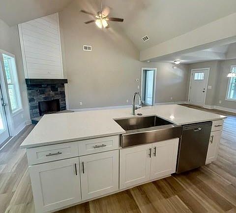 Brand new construction 3-bedroom, 2-bathroom ranch-style home offering comfort, convenience, and one-level living. Step inside to an inviting open-concept layout featuring a spacious living room with abundant natural light, a functional kitchen with white cabinetry and quartz countertops, and a cozy dining area perfect for family meals or entertaining guests. The primary bedroom includes a private bathroom with double vanities and a nice tile shower. Two additional bedrooms share a full hall bath ideal for family, guests, or a home office. This home also has a finished bonus room above garage to provide additional living space. Outside, enjoy a large backyard, perfect for relaxing or gardening, along with a covered back porch for outdoor relaxing.
