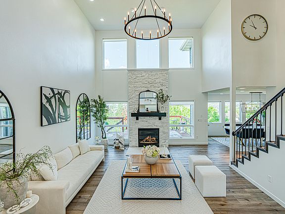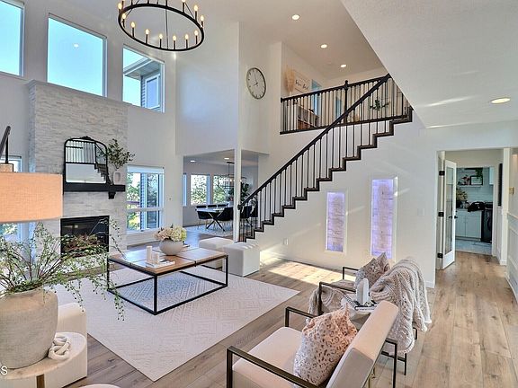 Wow! 152 approx. per sqft! Your next showcase home just got AFFORDABLE (BEST DEAL). This one-of-a-kind modern home with a landscaper's paradise awaits you. This is the once-in-a-lifetime gem you've been waiting for. It is now time for a NEW OWNER like you. This luxury-built home in NW Bismarck has all the space you need along with views & the seclusion of living in the county. This STUNNING custom-built home is fully renovated nestle in NW Bismarck with breathtaking panoramic views of the entire city with a distinctive yard or what you call an oasis on .65 acres. This massive two-story home with access to your hot tub from basement just shy of 5,000 square feet of usable space. Enjoy the captivating grande entry, high ceilings, architectural window, primary suite, office & den on main level and upper level has 3 massive bedrooms on one level with their own private bath. This premium-built home has attention to detail, heated floors in entry & kitchen and is Modernized with the Highest Quality of Upgrades. The private backyard is in incredible detail with abundance of mature trees, flowers & bushes and is TRULY Phenomenal & RETAINING WALLS OF ART that you one see in the movies. The .65 acres of professional landscaping is two tiered & gorgeous retaining walls with a stairway down to a stamped concrete patio enjoy the seclusion destination in middle of the city. From the moment you enter the front door it will take your breath away with all the trendiest of colors, luxury vinyl floors & all the accents of stone & tile. This exceptional home with Million Dollar NW Views looking over the top of the city surrounded by privacy of a cul-de-sac. Enjoy from the beginning Grande entrance with marble tile, high ceilings in the living room showcase an abundance of Anderson windows with custom blinds, Stack Stone Gas fireplace & Grand staircase looking over the main floor. Enjoy gathering in the open concept, energy efficient with 4 zones & extra space around the fireplace & the remarkable view of this amazing city. Most important the main floor has (TWO) Offices or Den, Laundry room, MAIN FLOOR PRIMARY SUITE is an oasis with a huge closet, whirlpool, double vanity, Tile shower, Marble Tile Electric fireplace & private access to the deck with glorious sunset views of the west. The newly improved chef kitchen is a Dream come true with a large granite & stone island for seating. Granite countertops & prep wet bar surrounds the Newer Samsung Smart Appliances, double oven, and ample cabinetry (White Custom Cabinets) throughout all redone to perfection! The MASSIVE dining area is surrounded by tons of light and patio doors that open to a large deck. There is also an office on both sides of the Grand foyer. Off the primary bedroom is a convenient ¾ bathroom w/ tile shower & tile wall. LUXURY vinyl flooring is carried throughout the entire main level & upper level (NO CARPET). Upstairs there are a total of 3 bedrooms each including a Vanity & ENORMOUS closet, full bath, huge loft excellent for second living space & views glazing at the luxury finishes. Beautiful west facing windows greet you everywhere. The fully finished basement with access to backyard has plenty of daylight with the large windows, large living room plus area for theater with projector that included, storage & access to the paver patio & hot tub that included! The 4-stall garage is 40 x 34 in size and is 1,360 sq ft, fully finished and pre-wired for 220 electrical. Four cars would easily fit! This home comes with appliances, Washer & Dryer are included. Specials are LOW, Location is central NW Bismarck, affordable tax and more. Call an agent today before your Premium Designed Home is gone!