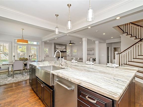 - Beamed Ceilings, Built-in Features, Ceiling Fan(s), Kitchen Island, Separate Shower