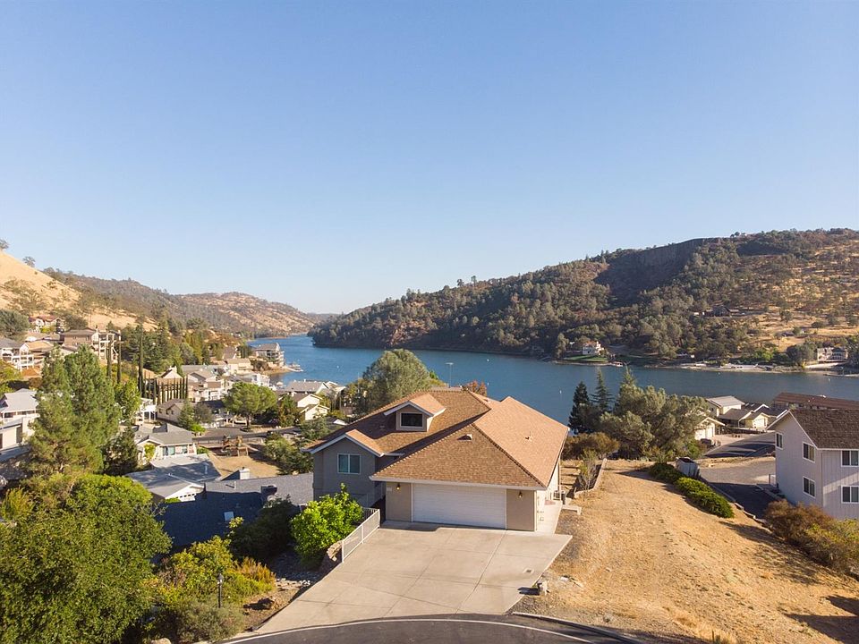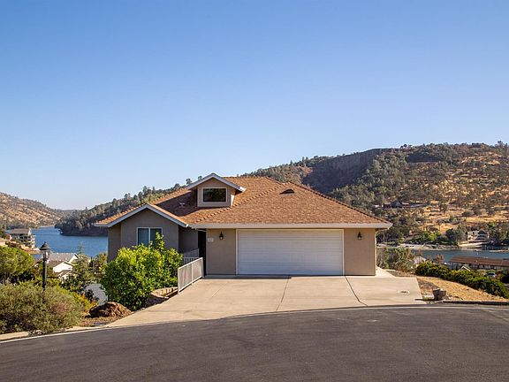 WOWZER! Stunning panoramic lake views of Lake Tulloch from virtually every room. Extraordinary views of the Bluffs capturing a variety of birds. Located at the end of a cul-de-sac for privacy and features an abundance of level parking. Entry level opens up to the great room effect, where the family gathers and makes memories. Two bedrooms and 1.5 baths on main level. Kitchen counters are gorgeous silestone and appliances are stainless steel. Downstairs offers bonus rooms (you can be creative). Also two bedrooms and one full bathroom. 6 inch concrete walls and extra insulation. Experience the outdoors; sunrises & sunsets off the trex decking, partially covered. Central vac for your convenience. You can only imagine!