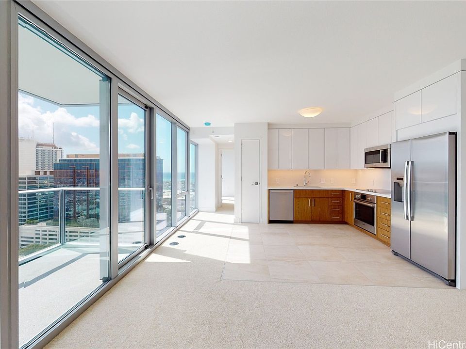 Welcome to Azure Ala Moana! This stylish 2Bd, 2Ba unit features a flexible living/dining layout, contemporary interior fixtures & finishes, open kitchen with Bosch appliances & quartz countertops, a primary bedroom with ensuite bathroom including double sinks, floor to ceiling windows throughout, split ACs in all rooms, full-sized, stacked washer/dryer in-unit, and one (1) assigned & secured parking stall + storage locker. Enjoy sweeping mountain, city, and ocean views from your balcony. Completed in 2021, Azure Ala Moana offers fabulous amenities, including a pool & jacuzzi, reservable BBQ pavilions, fitness center with outdoor workout area, club lounge with full kitchen & entertaining space, movie theater, guest suites, dog park and more. Right in the heart of the lively 'Midtown Ala Moana' neighborhood. Blocks away from world-class shopping at Ala Moana Center or world-famous beaches at Ala Moana Regional Park. Excellent rental potential as well, high demand as a rental unit. *Current tenant will be vacating the property by July 2024* Interior photos taken 2021 when the unit was first listed as a rental.