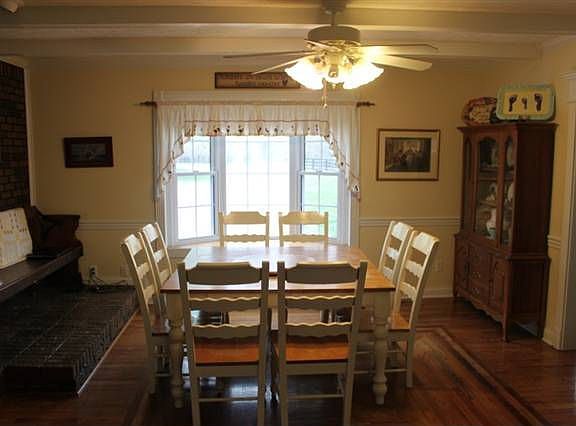 135 Acres. Beautiful farm. All fenced with creek frontage. Hardwood floors throughout home. Finished , partial basement with Be-Dry system. Screened porch. 5 garages.