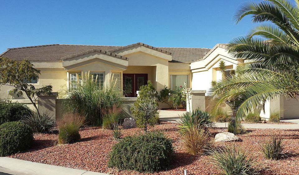 Enjoy the outdoor life in this lovely 3 bedroom + den home. Located in an upscale, centrally located, gated community with views of the golf course & lake, this home features a granite kitchen with an abundance of cabinet space and a hidden walk-in pantry. Enjoy the views of the lake from the dining area and living room thru surrounding windows. The living room has a clean and modern look with laminate flooring. A spacious master has lake views and a French door leading to the patio. His & hers double vanities, jetted tub, separate shower & huge walk-in closet make this the perfect ensuite master. There is plenty of space for family and friends with two guest bedrooms. The den has custom built-in desk & cabinets & laminate flooring for the perfect work space. Master bedroom and closet have just been carpeted and freshly painted. Oversized garage with plenty of storage cabinets. HOA incl membership to Mesquite Vistas Clubhouse with pool, fitness center, hot tub, tennis, volley ball.