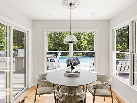 Rental Registration #: 25-51 Welcome to this luxurious new 3000 sq ft home with flex 4/5 bedrooms and 3 baths, situated on 3 acres at the end of a private cul-de-sac. Stunning Hamptons beach with all high-end furniture that creates an ebb and flow between indoor & outdoor space.This spacious home was masterfully finished and boasts an open concept with gorgeous interiors. Among other high-end details are a chef's kitchen and french doors that lead to an outdoor oasis - an extensive deck with a heated pool, outdoor chef's kitchen, hot tub, gas fire pit, outdoor heaters, and manicured landscaping to enjoy 3 acres of privacy, perfect for entertaining. Sonos entertainment throughout the main level.Step into the luxurious master bedroom located on the first floor, with custom walk-in closets, with bathrooms that are the epitome of understated elegance and spa-like accents. An abundance of natural light accentuates the bonus room its pocket doors located on the main level. Perfect for guests relaxing with extra privacy, workspace, or lounge area.Home includes an exercise area with a Peloton bike, a full set of dumbbells, plates, and a bar just to name a few.Minutes to East Hampton Village and Sag Harbor Village where one can enjoy beaches, shops, and restaurants. Call today and book your summer vacation.