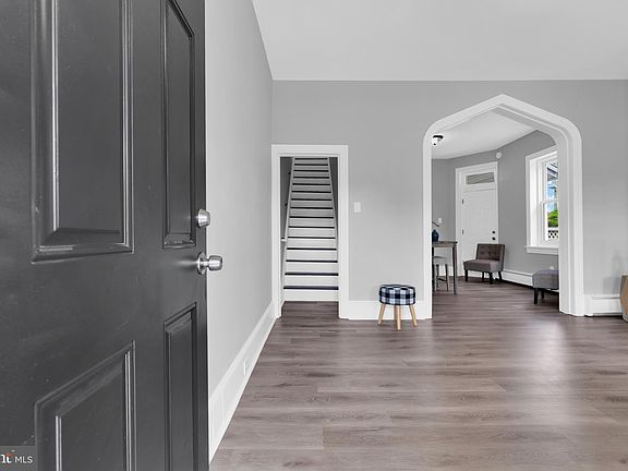 Move in ready 5 bedroom 1.5 bathroom home ready for you!  This Semi/Twin home has been freshly painted inside and out.  New wood flooring throughout the first floor that leads from the living room, dinning room and into the kitchen.  New kitchen backsplash, stove and refrigerator.  Half bath and laundry hook ups on the first floor.  Upstairs there are 3 Bedrooms and the full bathroom.  On the 3rd floor are 2 more bedrooms.   Full Unfinished basement for storage.  Side porch and fenced in yard to enjoy during the warmer months.  Come walk through today!