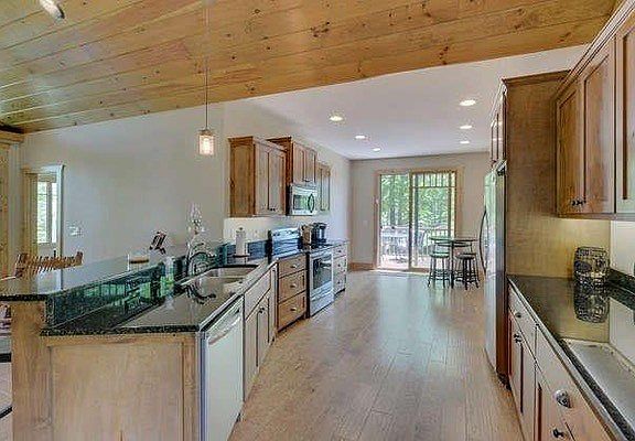 Fabulous Craftsman-Style home with Lake Chatuge Access, deeded slip at small community dock. This practically new home comes with beautiful custom cabinetry, granite counter tops, hardwood and tile floors, tongue & groove vaulted ceiling, double-sided rock fireplace w/gas inside and wood outside, front porch, rock columns, open deck and large screened sunroom. Terrace level features spacious guest suite with living/kitchenette & full bath, 500 sqft covered patio, private entrance and relaxing firepit area to enjoy the scenic mountain view. Conveniently located close to shopping, dining, schools & golf course.