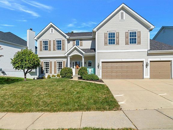Impeccably cared for 2-sty in the Legends Golf Community! This beautiful home offers A+ curb appeal w/freshly painted shutters/garage doors, newer roof, 3-car garage & covered front porch. Walk inside to over 3,000 sq ft, tall ceilings, wood floors, crown moldings, neutral colors & more. Entry foyer is flanked by a formal living room w/arched entryway. Dining room offers plentiful space & improved w/chair rail & crown moldings. Gourmet. eat-in kitchen features solid wood cabinets, granite counters, large center island, breakfast room w/bay/bow windows & planning desk. Family room flows nicely from the kitchen w/tons of natural light, recessed lighting & FP w/full brick surround. 1/2 bath on main level & main floor laundry. Upstairs is a large MB suite w/vaulted ceiling, HUGE walk-in closet w/master bath, loft area, 3 add. BR's & 2 add. full baths. LL W/O is ready for finishing w/rough in. Out back is a recently completed composite deck, concrete stamped patio & fenced in, private yard.