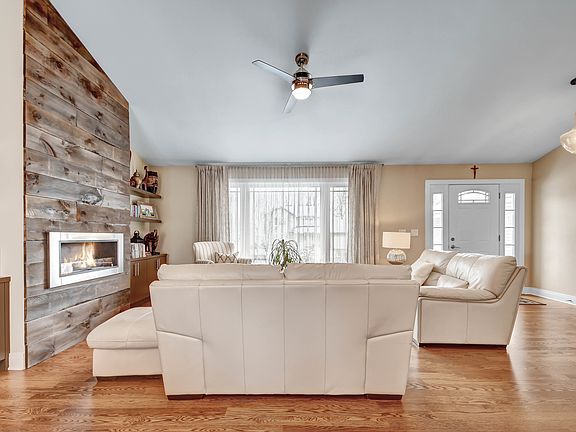 Get that 'at-home feeling' when you see the eye-opening interior of this quad-level home, recently thoroughly remodeled by its owners. Inside, find an impressive vaulted living/dining room combo with a contemporary bio-ethanol ventless fireplace. The kitchen has been completely redesigned with white cabinets, granite countertops, modern black stainless steel appliances, recessed lighting, and a sleek gray center island with a built-in breakfast bar, wrapped around by large windows. Upstairs, there are 3 large bedrooms, including a master suite with walk-in closets and its own bathroom. The walk-out lower family room level features a newer sliding door leading to the large backyard with a patio. There are a total of 2.5 fully remodeled and well-appointed bathrooms. Quality hardwood flooring runs throughout all levels, complemented by newer windows, doors, and classic white trim. The furnace, central air, and hot water heater are also only 7 years old. The unfinished lookout basement (also with newer windows) offers potential. This home boasts a terrific location within walking distance to a park and school. Schedule your viewing before this beauty is gone.