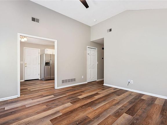 Enjoy one-level living with no steps in this awesome move-in-ready ranch style home! It boasts vinyl siding, contemporary colors, luxury vinyl plank flooring (LVP) and is located at the end of a street. This house features an eat-in kitchen with LVP flooring, solid surface counters, stylish backsplash, plenty of painted cabinets, pantry. Terrific great room with LVP flooring, vaulted ceiling, ceiling fan. Spacious primary bedroom/primary bathroom includes LVP flooring, ceiling fan, two walk-in closets, ceramic tile, shower over tub. Two roomy secondary bedrooms with LVP and a full bathroom for the ultimate convenience and comfort. Attached garage with laundry area and storage space with shelving. Front porch along with back patio includes 6’ privacy fenced backyard provides for relaxation and entertainment. This fabulous home spotlights maintenance free vinyl siding, contemporary colors, LVP flooring, thermal windows, bathrooms updates, electric car charging equipment. And, all of the kitchen appliances are staying too! Wonderful curb appeal and fantastic location close to downtown Olathe. Easy access to entertainment, restaurants, shopping. Award winning Olathe schools!! (agent related to seller; seller licensed kansas agent). Multiple offers received. Please have your offer in by 12 on Saturday. Thank you for showing this listing!!!
