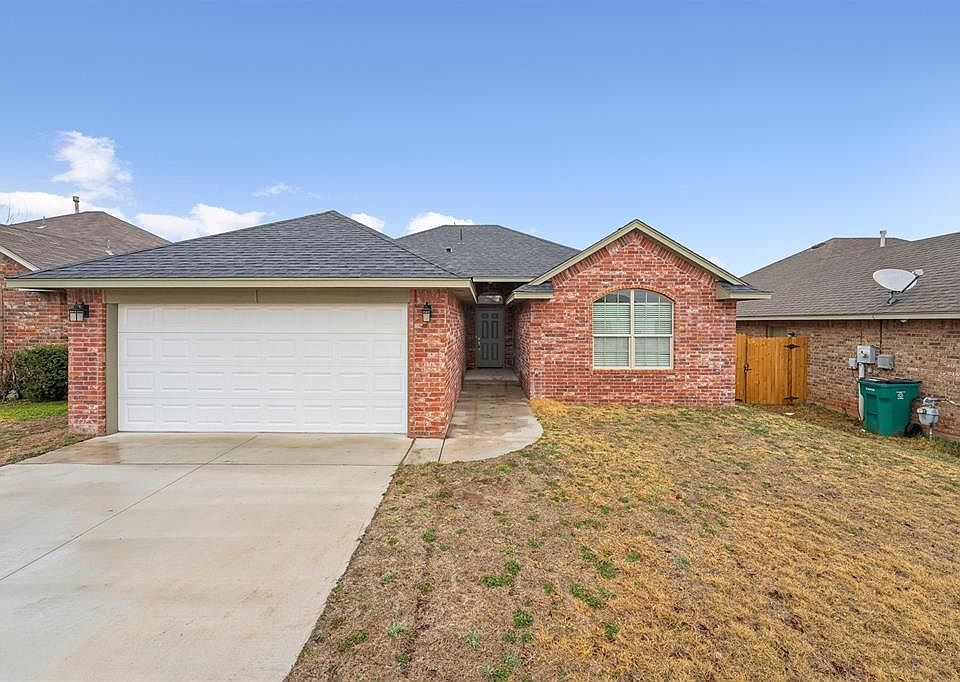 $7305 Down payment assistance available and up to $7500 in closing costs assistance! Welcome to your modern retreat where open, light-filled spaces invite both relaxation and lively gatherings. Step into a bright living area accented with extra LED lighting. The wood-look vinyl plank flooring flows seamlessly throughout the main areas, adding warmth and style. At the heart of the home is a chef-inspired kitchen complete with granite countertops, breakfast bar, pantry, and top-of-the-line stainless steel appliances. The adjacent dining room, also enhanced by additional LED lighting, offers lovely views of the expansive backyard—perfect for entertaining or enjoying quiet meals. The private master suite serves as a peaceful retreat with ample closet space and a luxurious en-suite bathroom featuring a tub/shower combo, and dual vanities with a lot of cabinetry and linen storage. The thoughtfully designed split floor plan places the additional bedrooms apart from the master, ensuring comfort and privacy for family and guests. Outside, the fully fenced property provides plenty of room for outdoor activities and enjoying the fresh air. You will love the included security system to give you peace of mind. Conveniently located in NW OKC close to Entertainment at Chisholm Creek, Costco, Quail Springs Mall, and OKC’s major highways which include the Kilpatrick Turnpike and Broadway Extension. 1-year Pro Home Builder warranty provided. Schedule your private showing today!