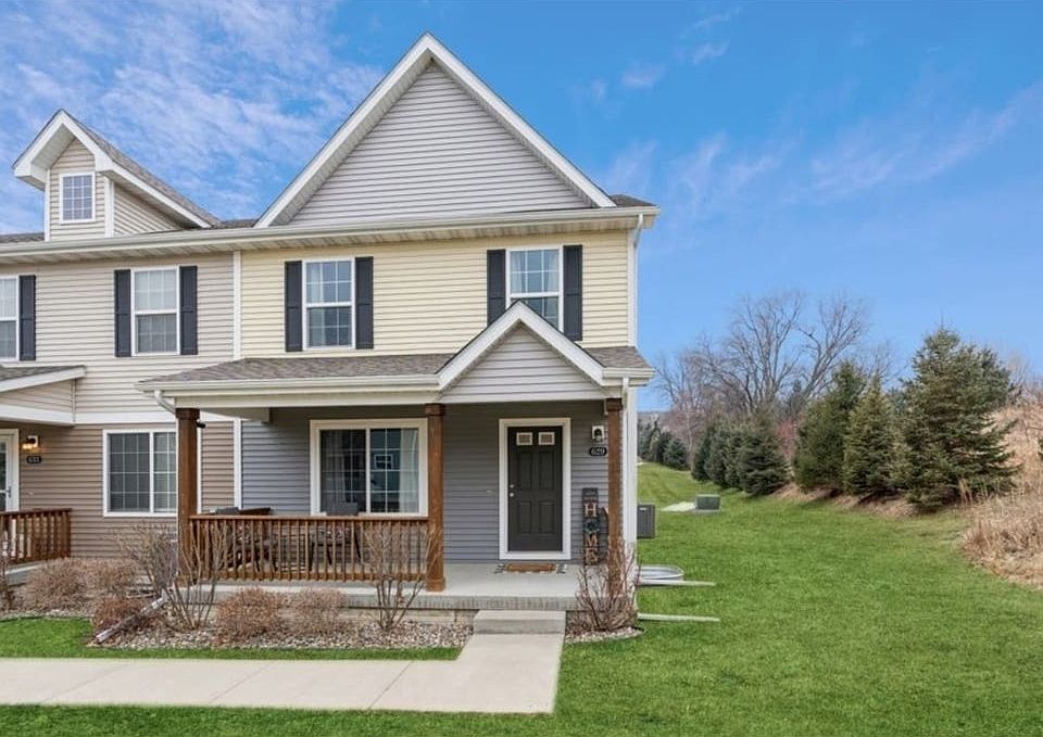 This wonderful two story end unit, has 3 bedrooms, 3 full & 1 half bath with over 2,000 sq ft. You will love the finished basement for additional living and entertaining space. This open kitchen features stainless steel appliances, granite counters, wood laminate floors that overlook the main l family room. Upper level has a large master with full bath and walk in closet. Laundry room is on 2nd floor for ease. Two stall garage with a covered front porch. Enjoy the community pool and club house along with lawn maintenance, snow removal, internet & exterior maintenance. This well maintained home is move in ready.