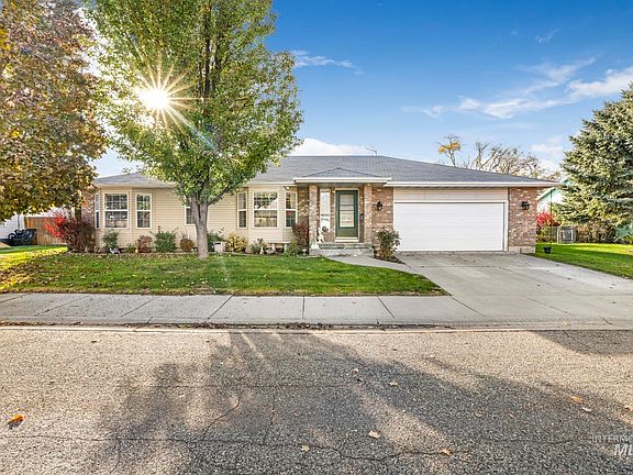 No flood insurance required! Come see this charming single level brick home located in an established quiet neighborhood. The front entry leads you to a spacious living room with an open concept floor plan flowing into the dining and kitchen area. The kitchen holds tons of storage space with ample cabinets and breakfast bar seating. Separate laundry room provides a mud room from the garage. Floor to ceiling windows offer tons of natural light throughout the home giving it a bright and airy ambiance. Bedrooms are separate from the living area. The master has 2 closets and an en-suite bathroom. Stepping outside, the backyard has a large, covered trek deck where you can enjoy the Idaho sunsets. Beautifully landscaped and fenced in. Lots of garden space. Turn this into your own backyard oasis. The property has a country like feel you must see for yourself! Home has been well cared for. AC replaced 6 years ago and runs off of natural gas. Insulated garage.