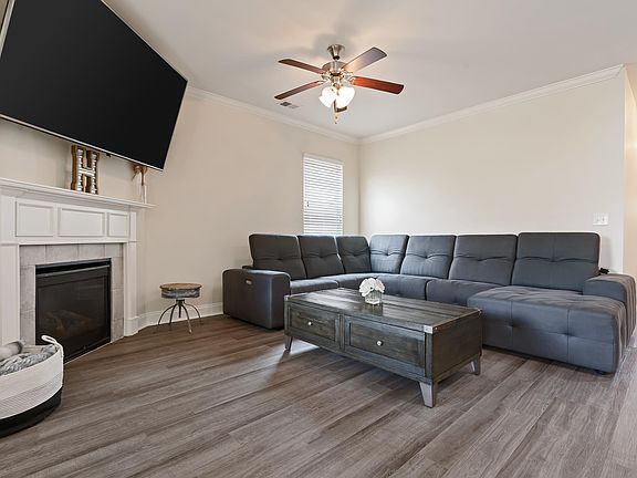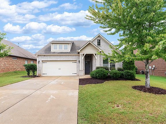 Welcome to Laceys Grove, this beautifully maintained four-sided brick, single level home has 3 bedrooms, 2 bathrooms, hardwood floors, crown molding, and a welcoming foyer. The kitchen features a 7’ island with seating, granite countertops, stainless appliances, and an open layout that flows into the great room with a cozy fireplace. The primary suite includes a tray ceiling, double vanity with marble counters, soaking tub, and a separate shower. Enjoy your fenced back yard, covered back patio, 2-car garage, and neighborhood perks like a lake and community pool. The best of Alabaster living.