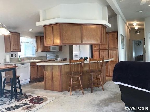 Extremely well maintained home in one of Salem's premier boutique manufactured home communities. 10X20 Covered front porch welcomes you to this beautiful & bright home w/spacious floor plan & dream kitchen, perfect for entertaining. The third bedroom has french doors & could serve as a den/office. Large master W/on-suite & walk-in shower. Attached garage & 10X12 shop.