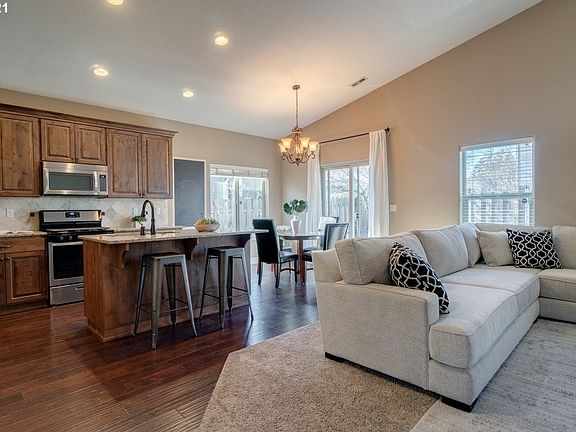 Move-in-ready single level home with a cozy yet open layout. Vaulted great room with ceiling fan opens to kitchen featuring slab granite counters, stainless steel gas appliances, large pantry & island with seating. Dining room features a sliding door opening to a fully fenced backyard with patio. The master suite is separate from auxiliary bedrooms & features vaulted ceilings, walk-in closet & private en-suite with a dual sink vanity & walk-in shower. 2 car garage, A/C, no HOA = lots to love!