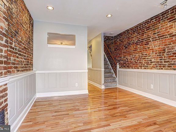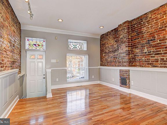 Stunning rowhome nestled in the heart of Canton highlighted with exposed brick walls, light-filled interiors, gleaming hardwood floors, neutral color palette, and design-inspired features throughout! Living and dining rooms graced with classic moldings and box wainscoting: Gourmet eat-in kitchen embellished with sleek stainless steel appliances, Range hood, Granite countertops, center island, breakfast bar, display cabinetry, and pendant lighting; Family room adorned with a fireplace, lofty windows, and easy access to the parking pad; Primary bedroom with walk-in closet and en-suite full bath with soaking tub; Second spacious bedroom, additional full bath, and beautiful skylight conclude the upper level; Recreation room with a wet bar, bedroom, powder room, laundry room, and storage complete the lower level; Recent updates: Main level blinds, paint throughout, carpet, plumbing, macerating pump (LL Bath), LL third bedroom, patio wall removed to add parking pad, dryer vent, and LL vent for heat and air; The exterior features Parking pad, sidewalks, streetlights, and city views! A MUST SEE!