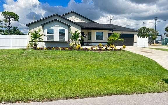 Step into this charming 4-bedroom, 3-bathroom home in the heart of Cape Coral where every detail has been thoughtfully attended to. Inside, you'll be welcomed by beautiful tile flooring throughout creating a warm and inviting atmosphere. The large open kitchen features quartz countertops that are accompanied by sleek stainless steel appliances. The bathrooms feature luxury wall paper adding a touch of elegance to each space. The entire interior and exterior has been updated with fresh paint, breathing new life into every room ensuring both style and functionality A brand new roof was also installed in September 2023, high impact windows and doors throughout the entire home ensuring convenience and a piece of mind. A/C System and water heater also new. This is the house you have been waiting for!