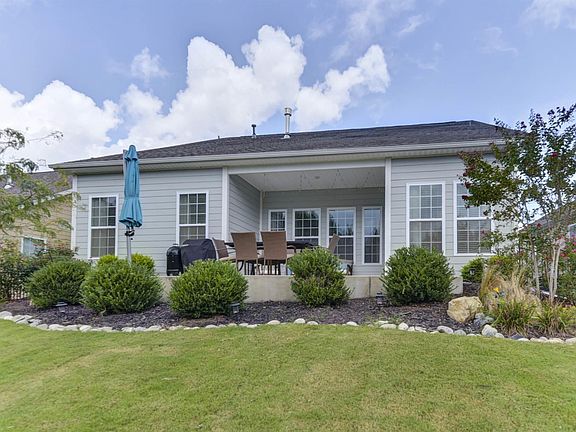 Beautiful, welcoming home with loads of curb appeal. Attractive landscaping in both the front and back yards. Generous yard that backs to trees and a pond! Oversized patio with plenty of room to entertain. Spacious and open interior layout with the biggest kitchen island on planet earth plus a separate dining area. Master bath has double sinks, separate tub and tiled shower. Gorgeous neighborhood pool, fitness center, basketball gym, tennis courts and amazing 27 hole golf course. One floor living at its finest!