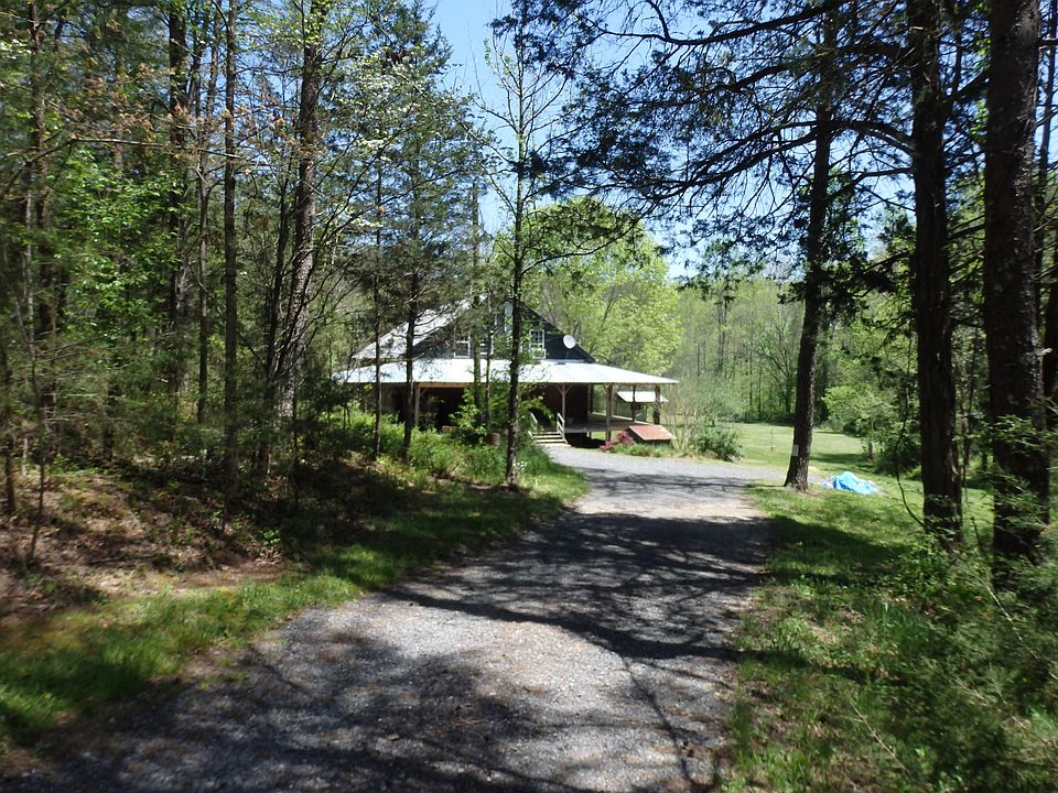 Outdoor paradise, this craftsman home has unique features throughout. Post and beam home Constructed from yellow pine frame lumber milled from trees on the property. Cedar Posts accent the home throughout. Grapevine railing on stairs collected from the property. Hurricane ties in roof. Unique S wall on main level separates Masterbed from entertainment area. Entertaining area has game boards for wall covering. Kitchen has grill range open to the living room/ entertaining area. Masterbed and bath on main level, master bath is not finished but could be to make it yours. Large area on main for living room/ entertaining area or great room. Upstairs has loft area and an additional bedroom with treehouse loft. Half bath is located on second floor could easily make loft area additional