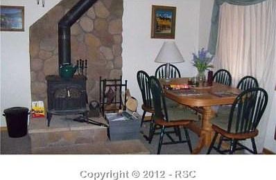 Lovely well maintained mountain home in Spring Valley! Sprawling private fenced in back yard has large mature pine trees providing that tranquility everyone yearns for. Rear deck even features a hot tub! The front porch & living room have a"peak" at Pikes Peak. Main level has open floor concept. Stone hearth wood burning stove can heat up the entire main level! The kitchen features lots of cupboards, newer stainless steel refrigerator & a work station with seating! Private stocked lakes are part of this subdivision!