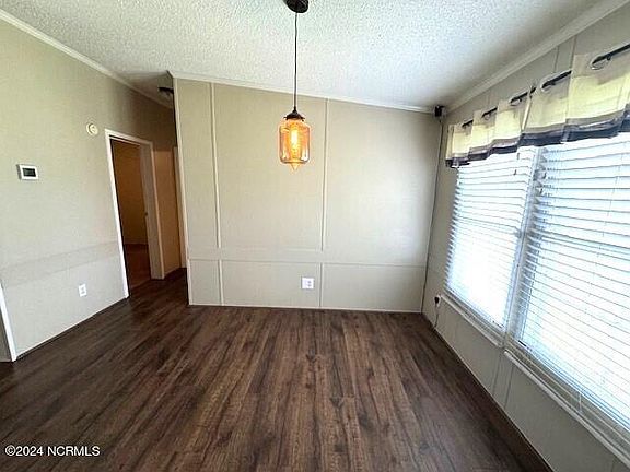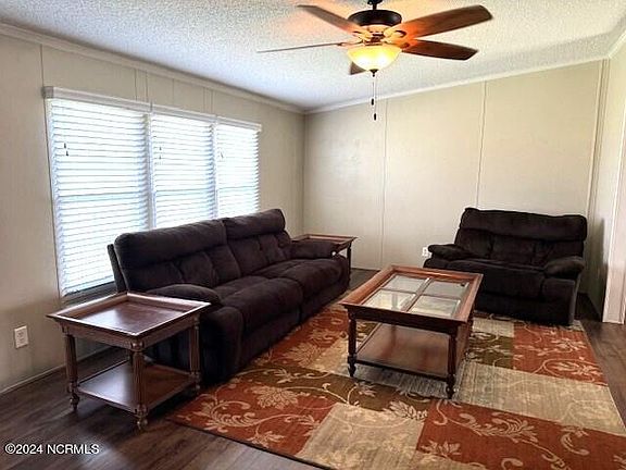 This 3 bedroom, 2 bath home is located just outside of Ahoskie and has some recent updates. The home features an open floor plan with the living room, dining area and kitchen open to each other. The living room is spacious and has some built in cabinetry. The dining area is conveniently located near the kitchen, allowing for easy entertaining. The kitchen has ample counter and cabinet space and includes the refrigerator, range, dishwasher and microwave. The main bedroom includes a nice sized closet and a full bath with a garden tub and separate shower. There are two additional bedrooms on the other side of the home that share a nearby full bath. There is a 16' x 10' storage building in the back yard that has electricity. There is also an outdoor entertaining area with wooden furniture and a fire pit.