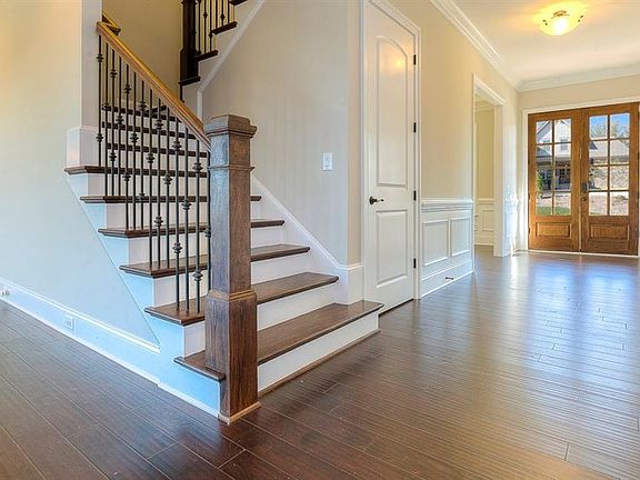 The Kendrick is a master bedroom up plan. 3 car courtyard style garage with a beautiful wooded back yard view. Fully sodded yards with irrigation, maple cabinets with soft close doors, 165K BTU Tankless water heater, 16 seer Carrier HVAC system, Anderson line LOW E windows, Covered rear deck, Home team pest control system, 10 ft ceilings, hardwood on the main areas of the first floor and the hallway of the second. Double ovens and so much more. Close proximity to Baxter Trail system and new park