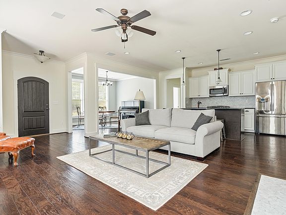 This charming single-level home exemplifies contemporary living at its finest. A welcoming foyer opens to a fabulous open-concept floor plan, featuring a spacious family room a with surround sound system and a beautifully upgraded tile gas fireplace. The large kitchen boasts a vast island with a bar and a formal dining area, perfect for entertaining. The expansive master retreat comfortably accommodates oversized furniture, and the luxurious master bath invites relaxation after a long day. Two additional bedrooms and a full bath complete this cozy, comfortable home. Additional amenities include a four-sided brick exterior, a covered back porch, a front yard irrigation system, stainless steel appliances, and granite countertops in the kitchen and baths. Situated on a quiet cul-de-sac, this home offers a private lot adjacent to Black Creek Mountain Bike Park. The long driveway with a side-entry garage at the rear enhances privacy and provides ample space for outdoor entertaining.