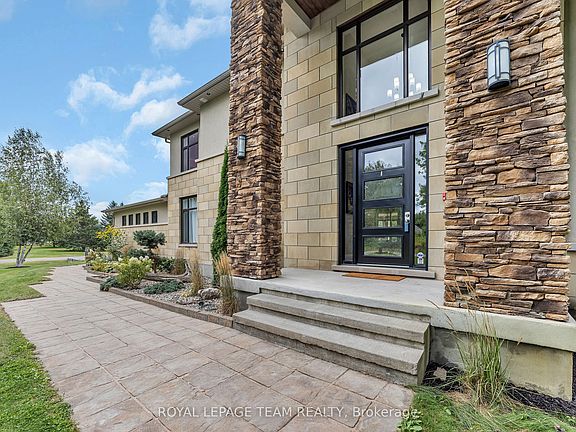 Welcome to Luxury Living in Emerald Links Nestled between the #1 and #2 holes of the West Course, this custom-built executive home sits on one of the largest corner lots in the prestigious Emerald Links Golf Course Community. Built in 2010 and beautifully maintained, this 6,500 sq. ft. residence (~4,800 sq. ft. above grade) offers a perfect blend of elegance, comfort, and state-of-the-art smart home technology. Interior Highlights: Award-winning Design: 2010 Ottawa Winner Kitchen & Ensuite Bathroom of the Year; chef-Inspired kitchen with premium finishes. Bright and spacious lower level featuring additional kitchen facilities and bar, cedar wine cellar, home theatre, vintage pool table, and commercial grade home gym. Thoughtful design continues with an outdoor oasis featuring a 20 x 40 gas-heated ionized pool with spillover hot tub, two poolside gazebos with custom hemlock 8x8-inspired lounge, propane outdoor fireplace, and wood-burning pizza oven. An entertainer's dream, there is also a dedicated pool house with kitchen facilities, an ice machine, a bar & 2 piece bathroom. The list continues with a golf putting green and sand bunker, a second outdoor fire pit, an invisible pet fence around the full property perimeter and a 12-zone automated irrigation system. Additional features include 3 gas fireplaces, two 3-tonne A/C Units, dual furnaces and on-demand hot water, new salt water softener system with UV light (2024), central vacuum system and air exchanger, deep 3-Car insulated garage with 220V universal EV rapid charger with basement access from the garage. Inside, you'll find a fully smart-enabled home, hardwired with CAT5/6 and managed through a centralized tower rack. Using the Control 4 App - control lighting, temperature, security cameras, TVs, audio, garage doors, alarms even the pool all from your smartphone.